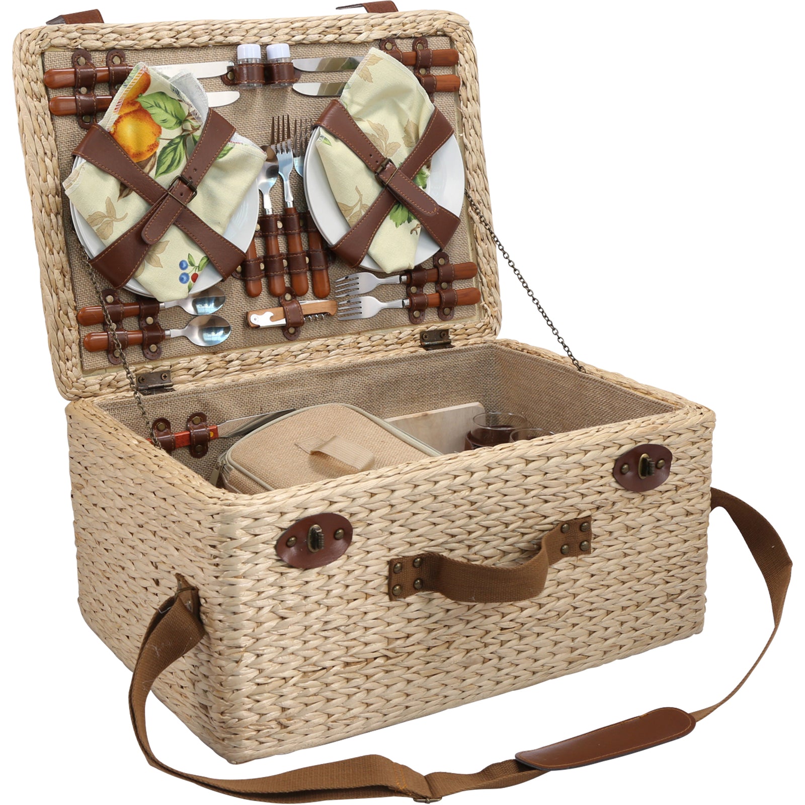 Carry two bottles of wine and all the extras with this spacious tote
