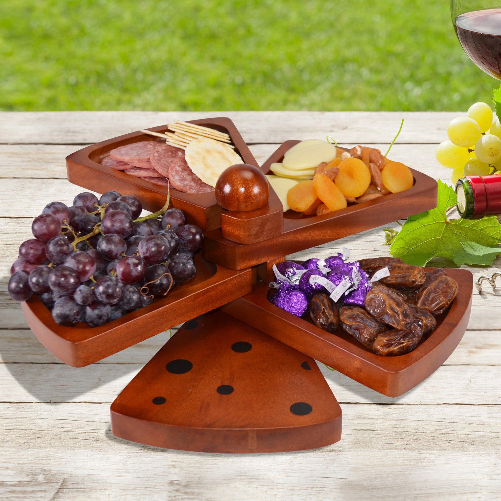 Cambridge 5-Tier Appetizer Trays also function as wine glass holders for party guests.